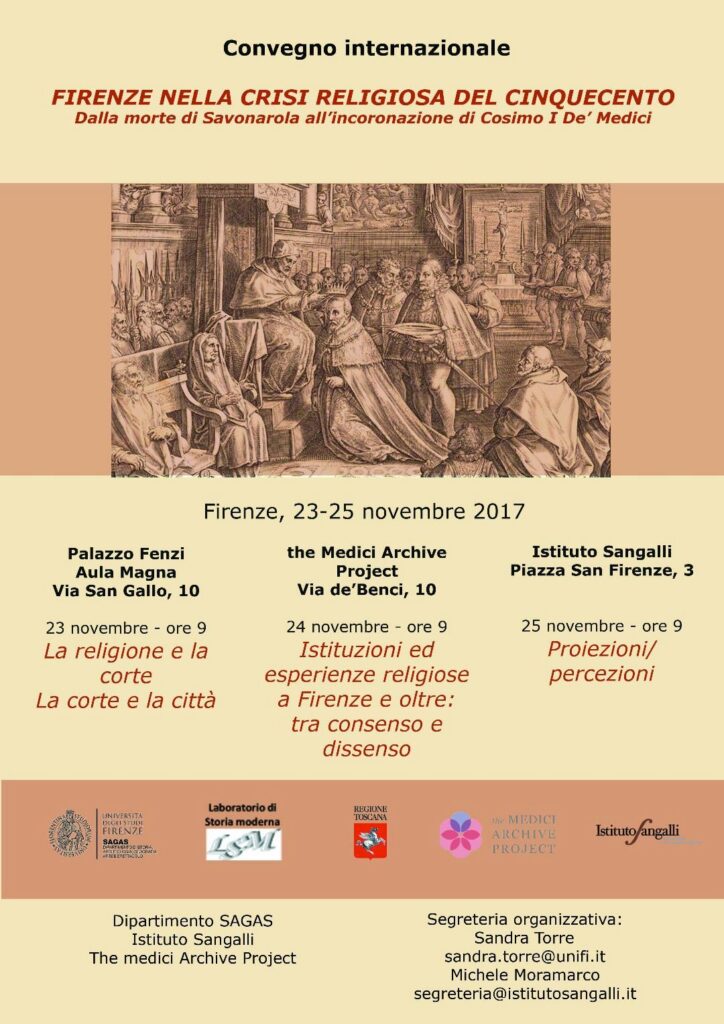 Conference in partnership with Università degli Studi di Firenze, Centro Culturale “Pietro Martire Vermigli”, Istituto Sangalli per la storia e le culture religiose, Regione Toscana